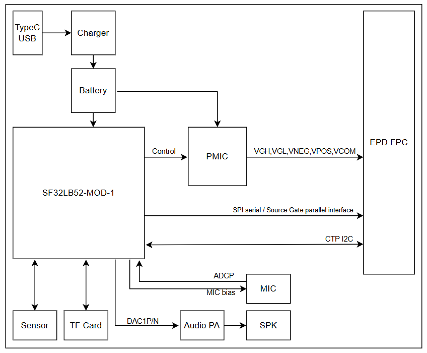 本文的主要目的是帮助开发人员完成基于SF32LB52-MOD-1模组的墨水屏方案开发。本文重点介绍方案开发过程中的硬件设计相关注意事项,尽可能的减少开发人员工作量,缩短产品的上市周期。