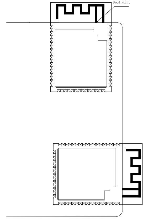 如产品采用模组进行 on-board 设计,则需要预留好模组 PCB 天线的位置,保证天线区域上没有其他器件和金属区域,避免影响天线辐射效率,考虑好模组在底板的布局,应尽可能地减小对模组 PCB 天线性能的影响。