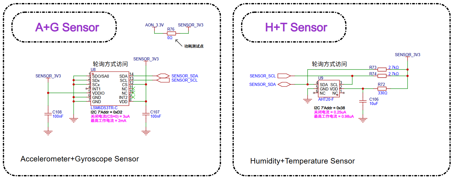 传感器采用I2C接口连接,CPU轮询方式来获取数据,省去中断信号。